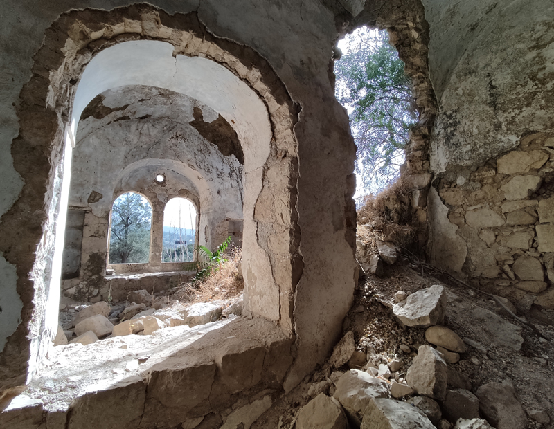 נעלה אל שרידי הכפר קאלוניה, כפר ערבי ששכן ממש מעל המושבה מוצא.