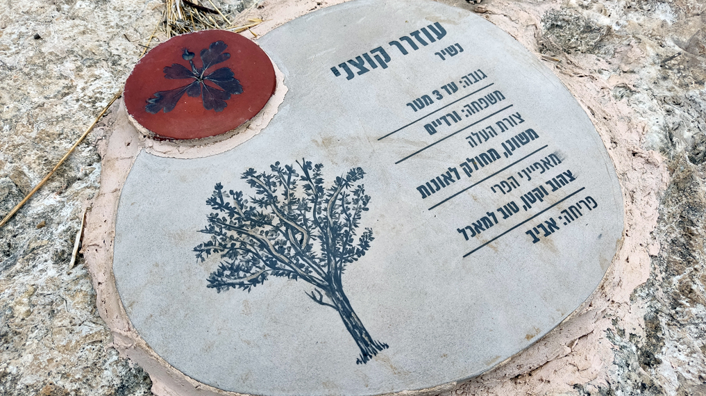 לוחות אבן ועליהם מידע על העצים שנפגוש לאורך המסלול