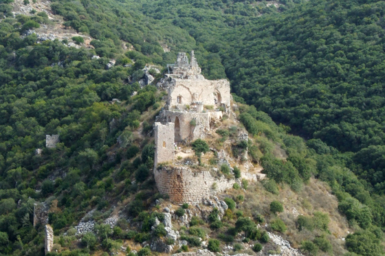 לאחר כ-20 דקות של ירידה, פונה השביל המסומן בשחור ימינה, ואילו אנו פונים שמאלה לשביל רחב ולא מסומן וכעבור כ-3 דקות הליכה בעלייה מתונה נגיע אל בית הכנסת העתיק והמפואר |7|, שנבנה ככל הנראה בתקופה הביזנטית (לפני כ-1,700 שנים). הנוף הנשקף מכאן מרהיב: הכנרת פרושה מתחתינו, רכס פוריה והרי מירון מתנשאים מאחוריה. בשעות אחר הצהריים, כשהשמש שוקעת מולנו המחזה מרהיב במיוחד.