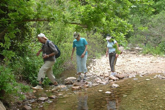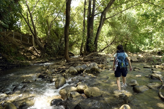הולכים במים קרירים לצד ערוץ שזורם בעוצמה