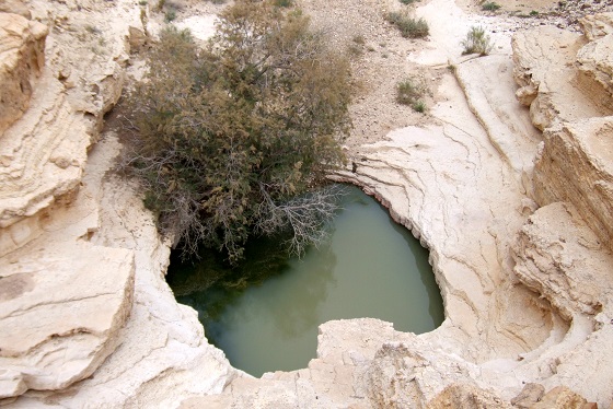 גב מים מדברי גב עין אום-תינה (מעיין אם התאנה) מלא במים לאחר שיטפון - צפון מדבר יהודה